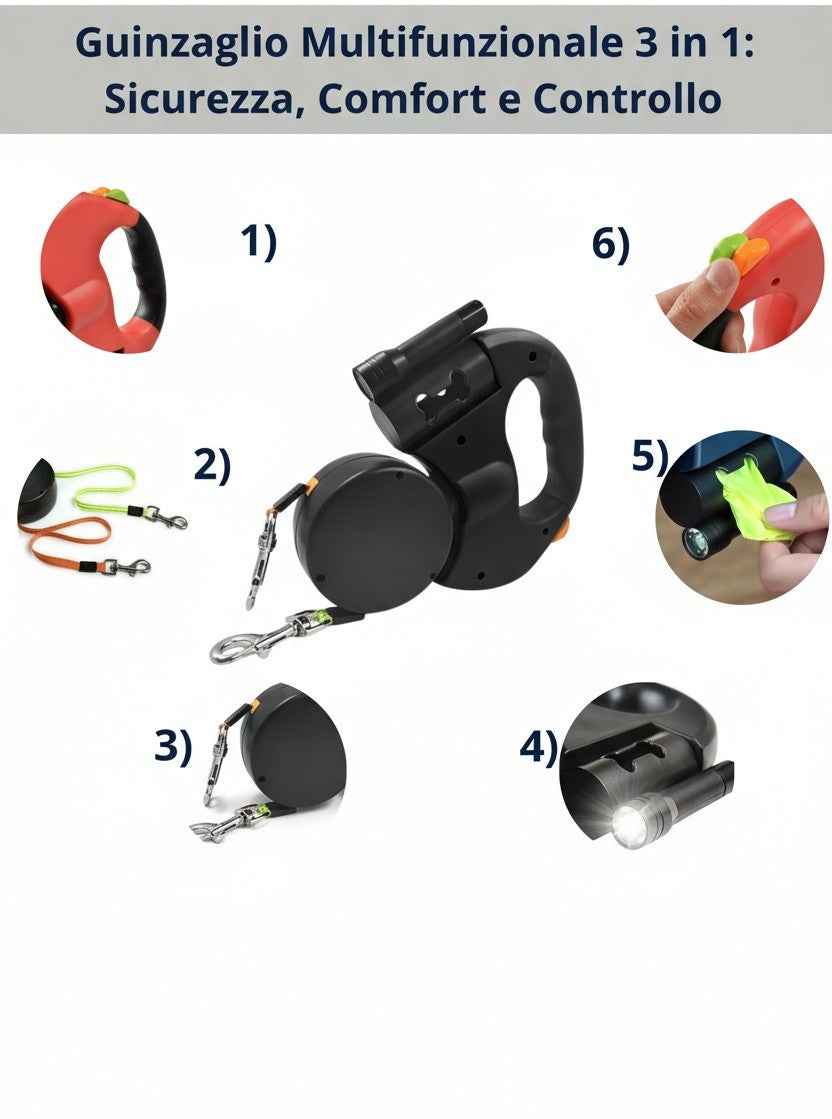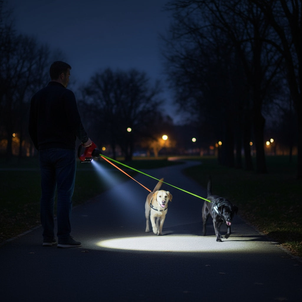 Scopri ZampaLux™: Il Guinzaglio Doppio Retrattile con Torcia LED Integrata