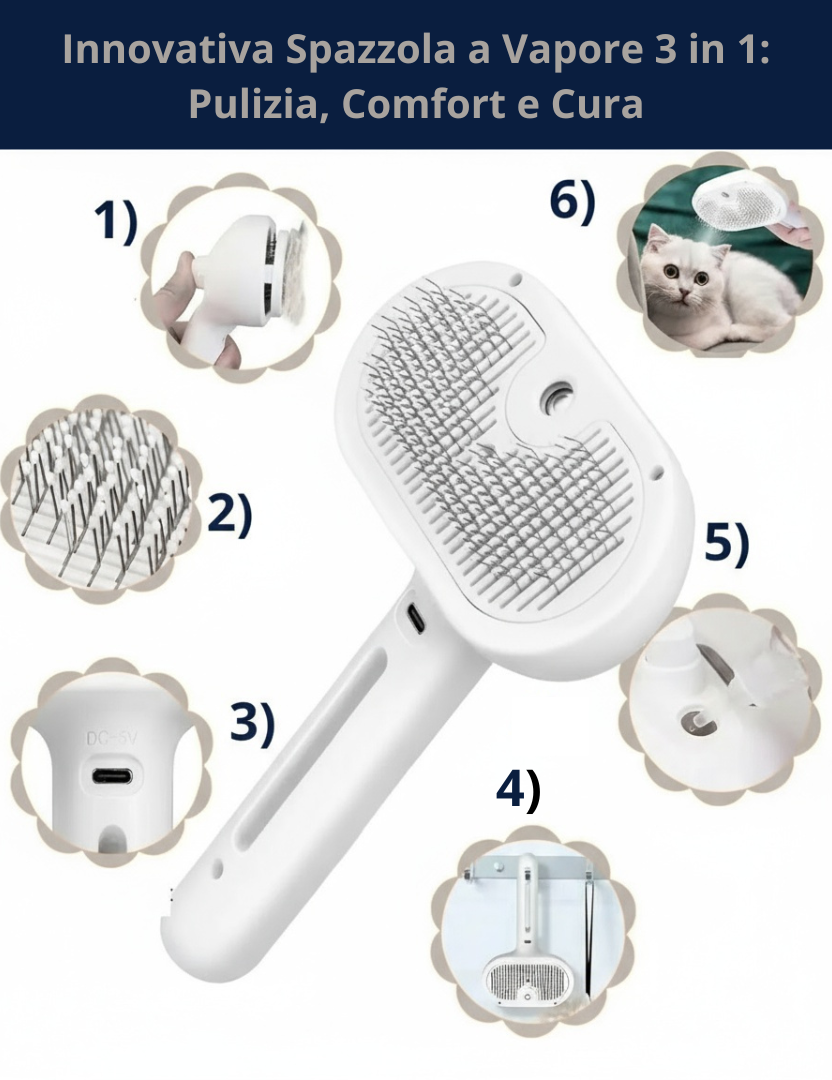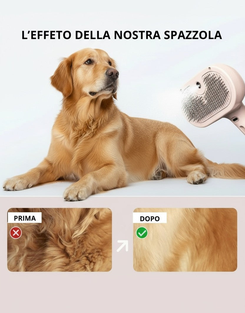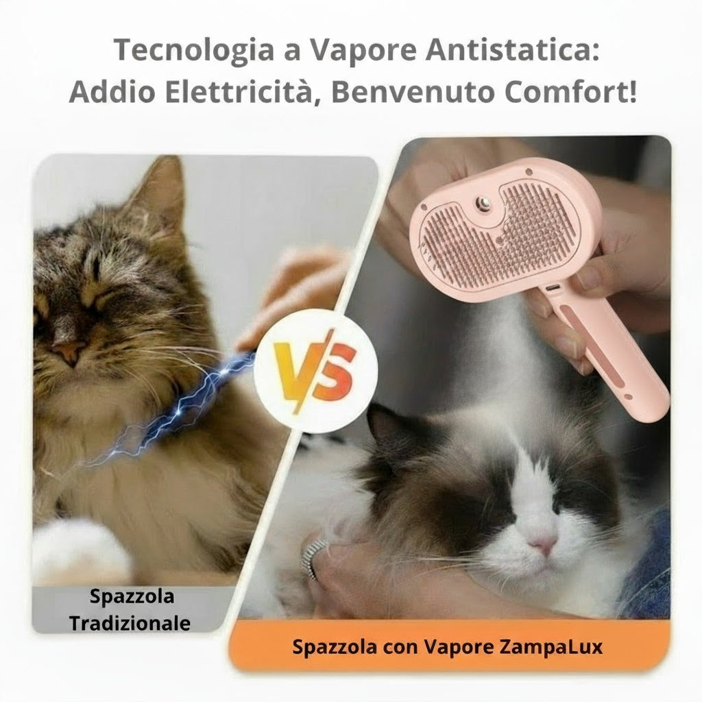 Per questo abbiamo creato la Spazzola a Vapore ZampaLux™, un accessorio innovativo che trasforma la toelettatura in un momento di relax, benessere e complicità.