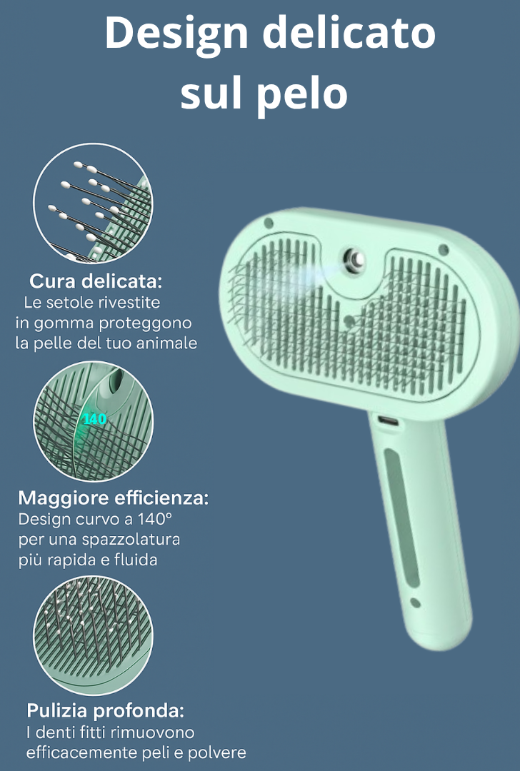 6) Design con spruzzo: idrata il pelo e riduce l’elettricità statica.